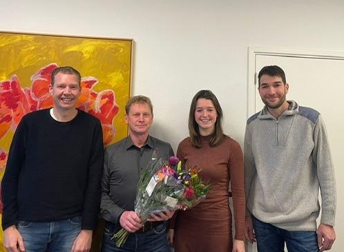 V.l.n.r. Patrick Post (Elver), Ric Engelberts (Elver), Heleen Helmers (Laborijn) en Falco Lichtlee (Elver)